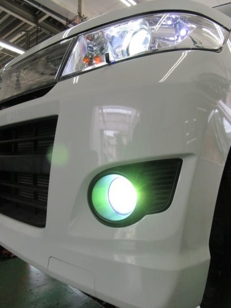 今回のワゴンRのお客様も「フロント周りのライトの色合いを合わせたい!」とフォグランプのHID化を希望されていました。