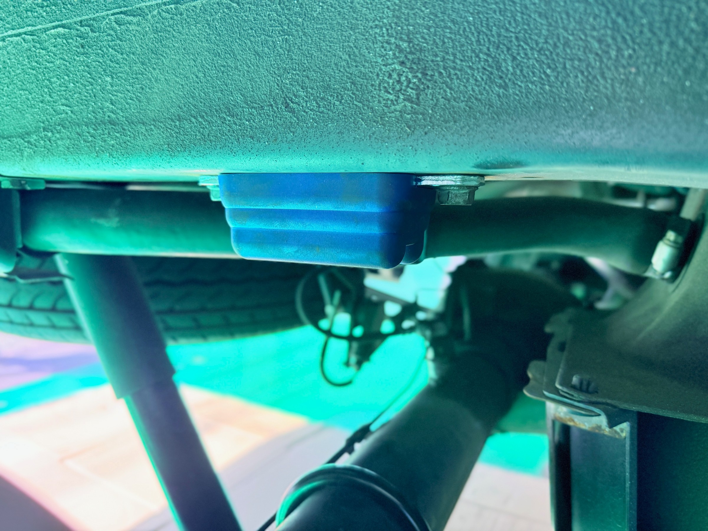 キャラバンはローダウンした際に給油口から伸びているフューエルパイプがタイヤと干渉する場合があるので「フューエルラインエスケープキット」も同時に取り付けさせていただきました。