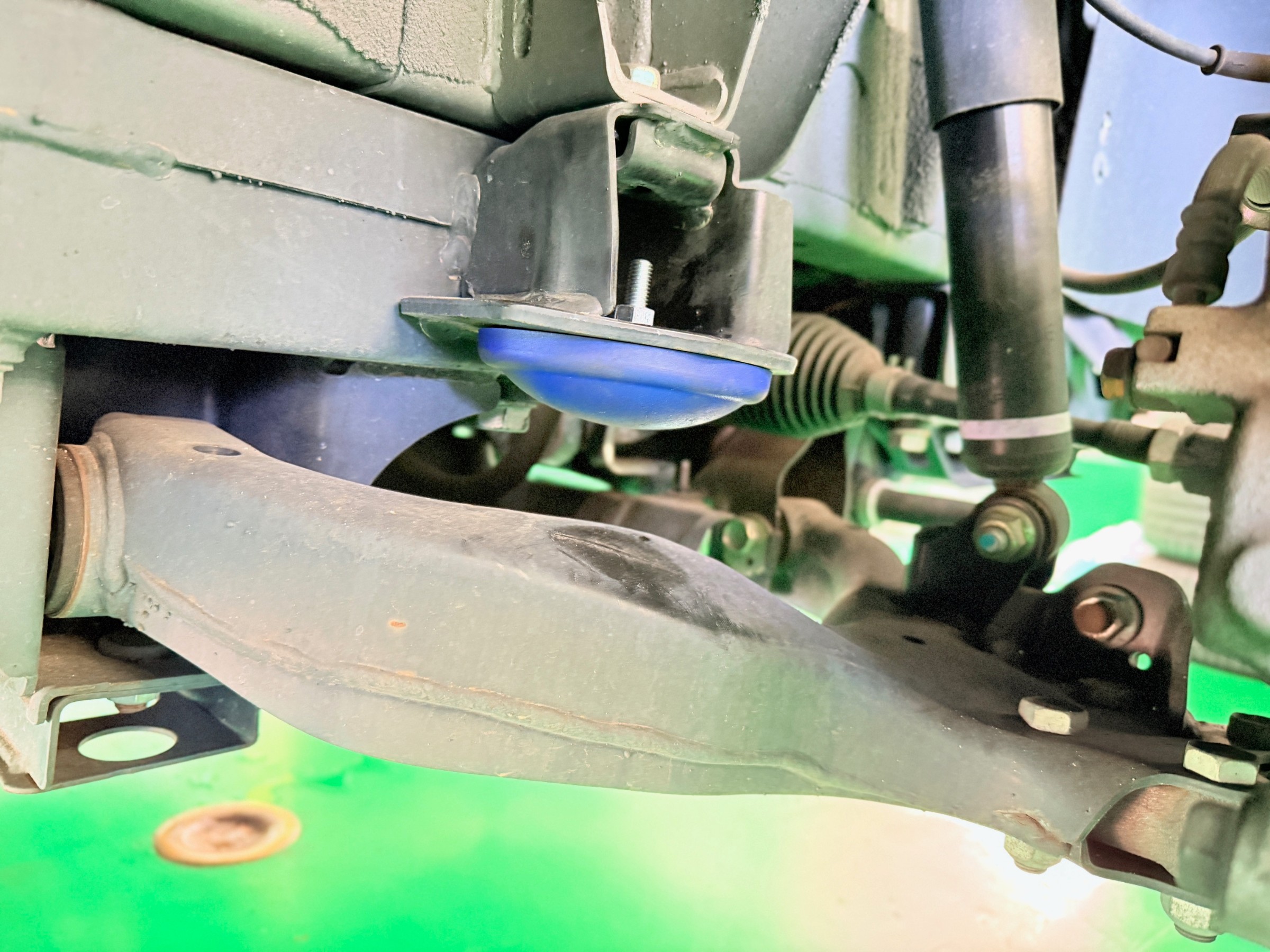 フロントのキャスター・キャンバー・トウは大きく狂います。