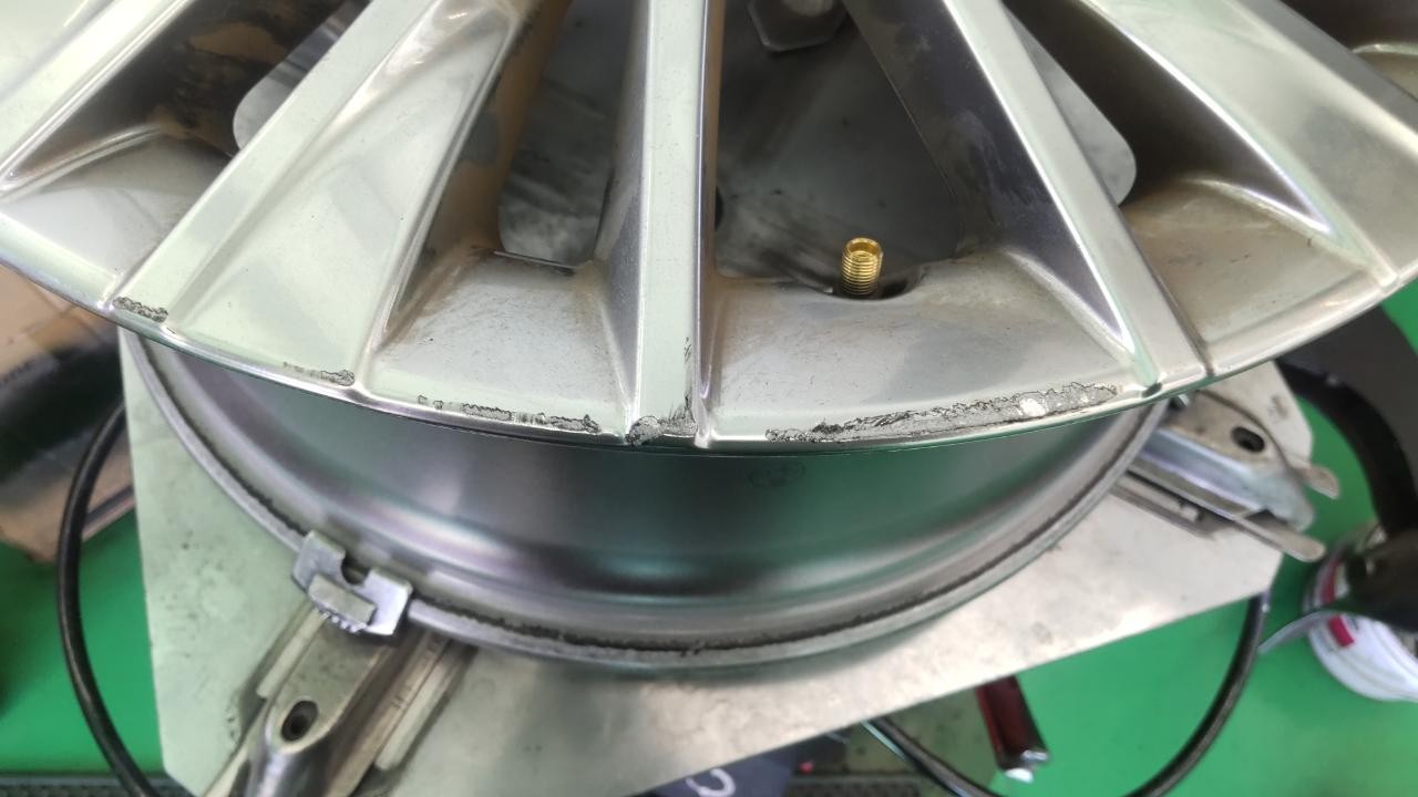 タイヤ館瀬谷のオリジナルメニューのアルミホイール簡易修理です。