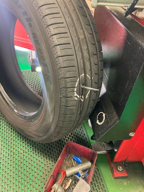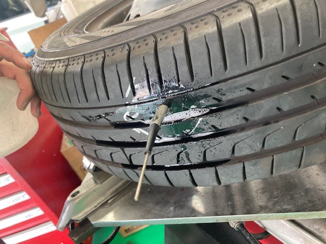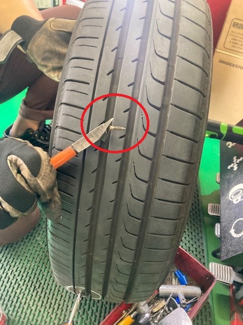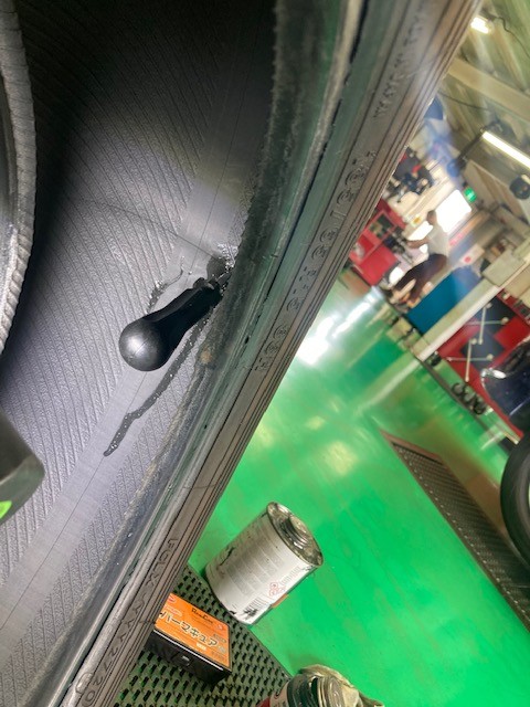 今回入庫したお車にはこのような釘が刺さってしまっておりました。