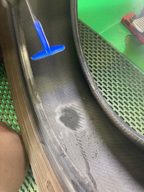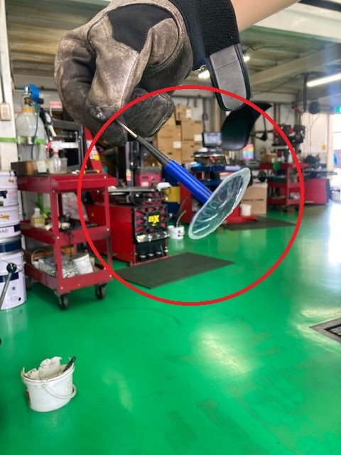修理剤が突き出している部分にもかけてチェックします。