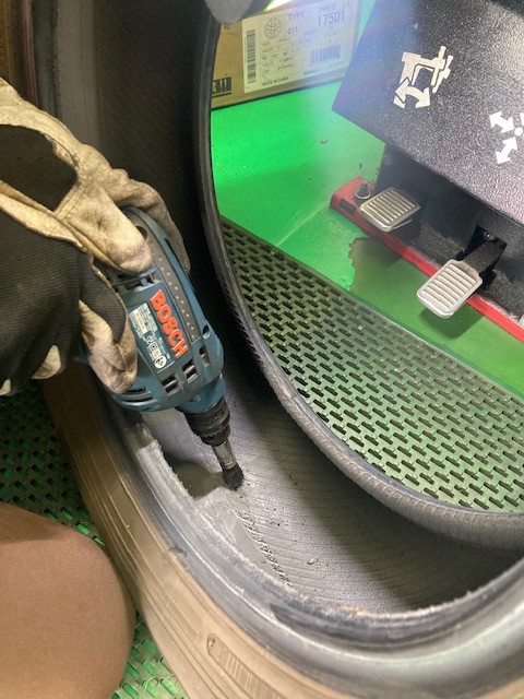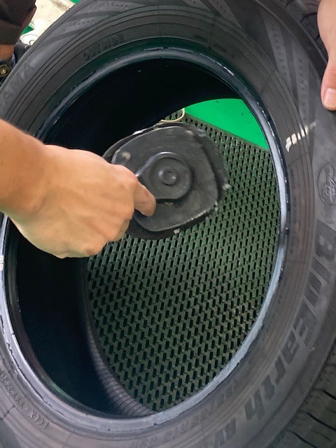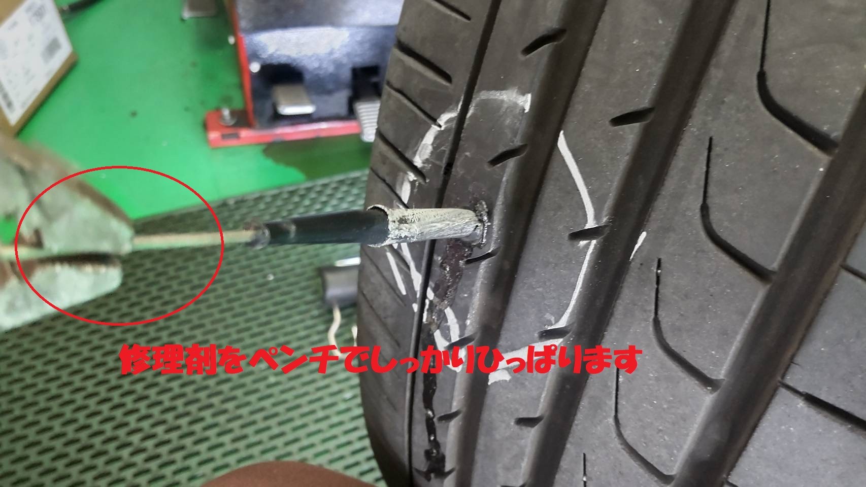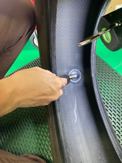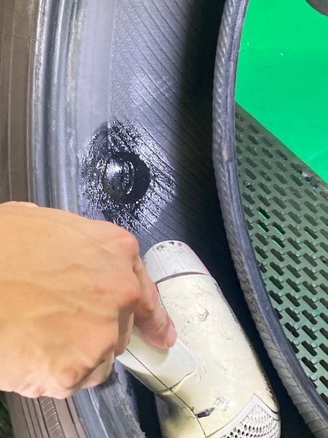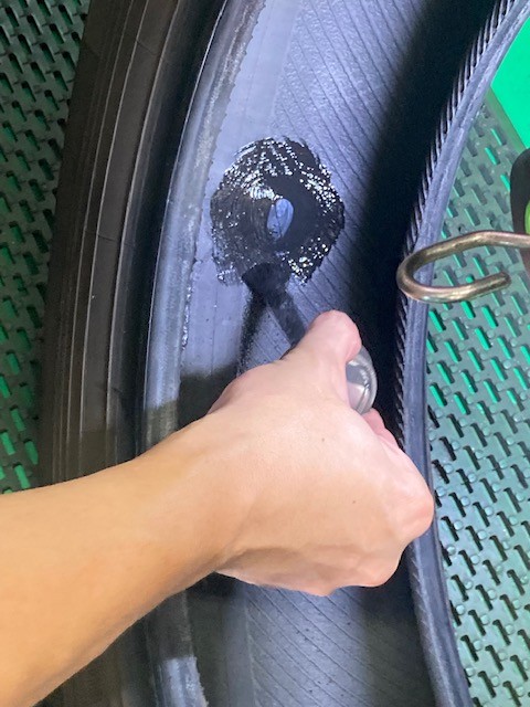 パンク内面修理は内側から修理穴を広げ慣らしたところに修理剤を打ち込む方法です。
