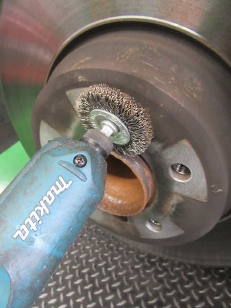 研磨機やヤスリ、ワイヤーブラシなどで錆びた部分をゴシゴシこすります。そのあとは錆止め効果のあるグリスを塗るだけです。これで次にタイヤを外すときに楽になると思います。