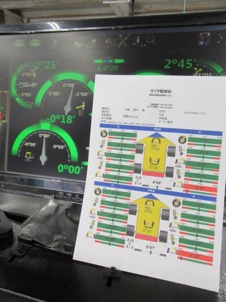 せっかくタイヤを新品に変えるなら!との事でしたので当店自慢の最新アライメントテスターでアライメント調整も同時に行いました。
