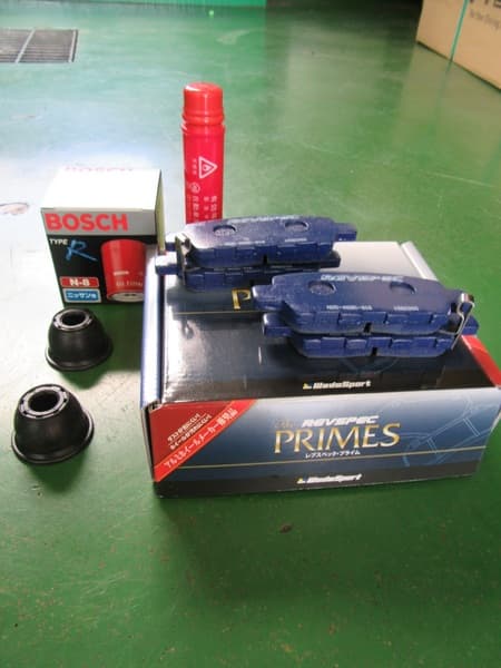交換した部品は、エンジンオイル、エレメント、ブレーキフルード、リアブレーキパッド、タイロッドエンドブーツです。
