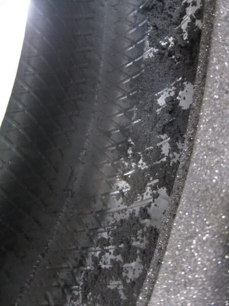 タイヤを外すと中は「ボロボロ!」な状態が確認できました。