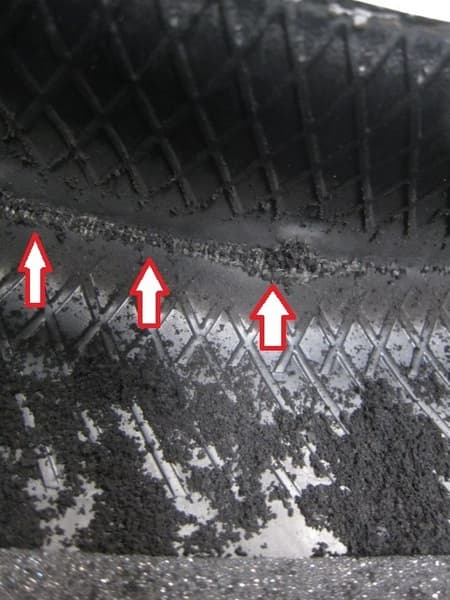 内部ではゴム部に留まらず、タイヤの骨格といえるコード類が損傷し、