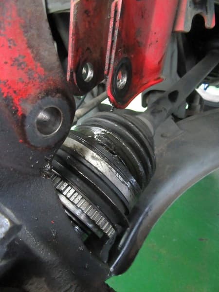 ドライブシャフトブーツが破れブーツの中に入っているグリスが外に飛び出してしまっていました。