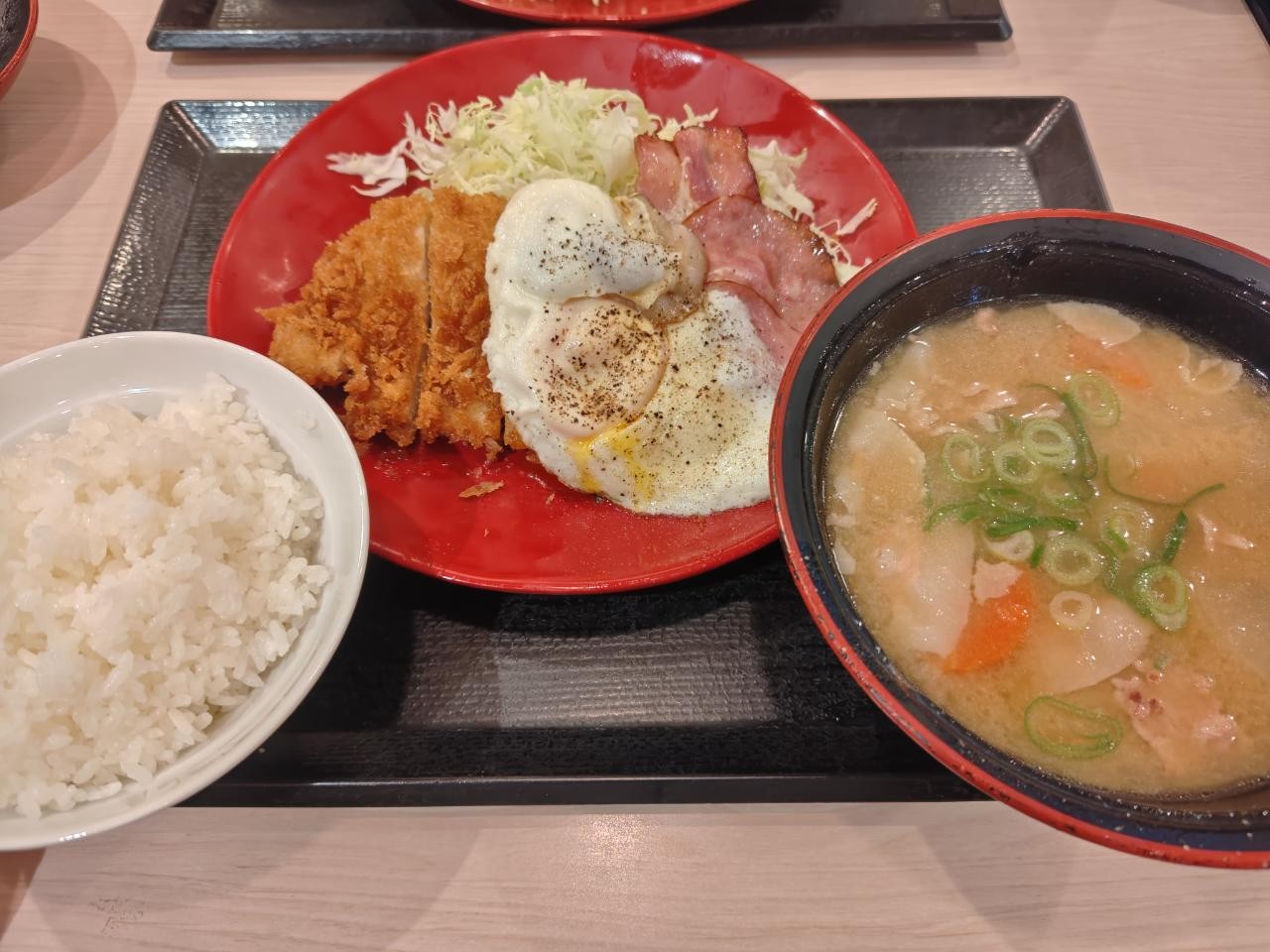 カツとベーコンとハムと目玉焼きが一皿になっている定食があり注文しました。