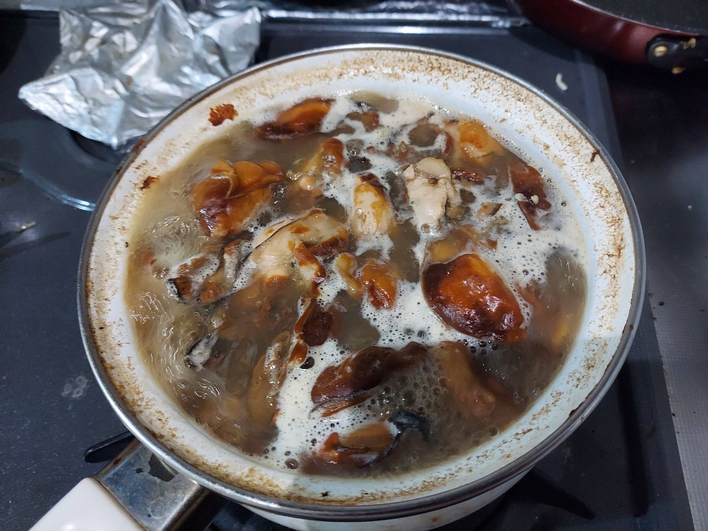まずは煮立たせて灰汁を取っていきます。