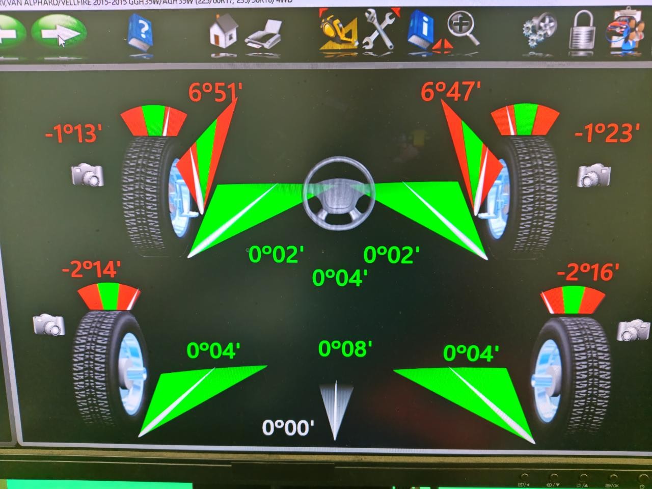 調整が出来る所では右フロントのトーと右リアのトーが基準値からズレてますね。