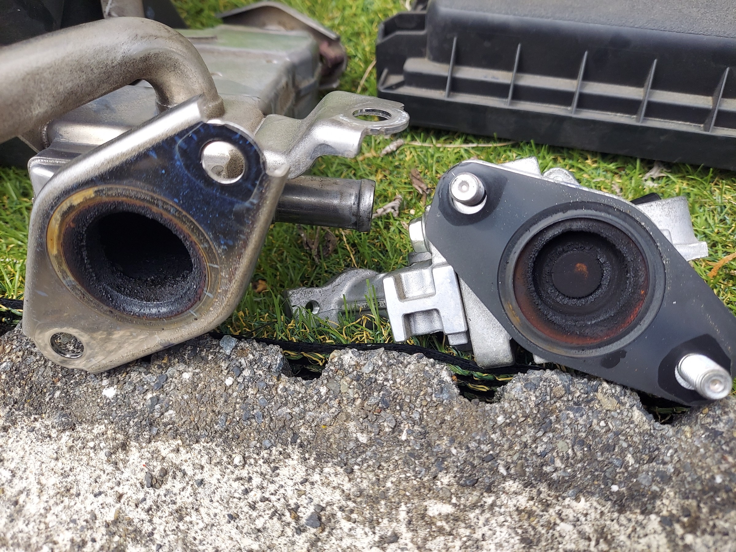 EGRバルブとEGRクーラーを分離させて中を見てみると