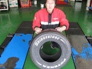 F1のタイヤ(レプリカ)などを一目見せてあげようと用意いたしました。