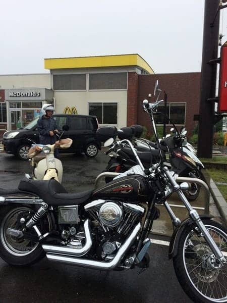 8時30分に瀬谷のマックで集合です。 到着すると岩本店長、美濃口スタッフ、そして今回初参加の元担当セールスマンの原さんがすでに到着しておりました。当初はこの4名でツーリングに行くと聞かされていましたが、なぜかもう一人います!