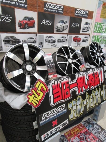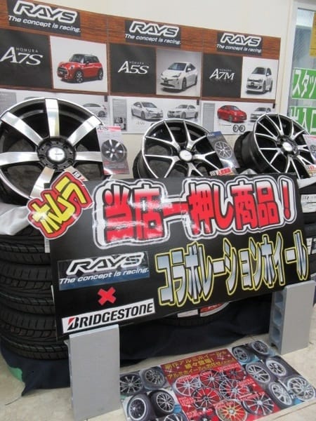 実は数年前からホイールメーカー「RAYS」とタイヤメーカーである「ブリヂストン」との間でコラボーレーションブランドを展開しておりまして、「HOMURA」から「A5S」「A7S」「A7M」の3アイテムが発売されています。