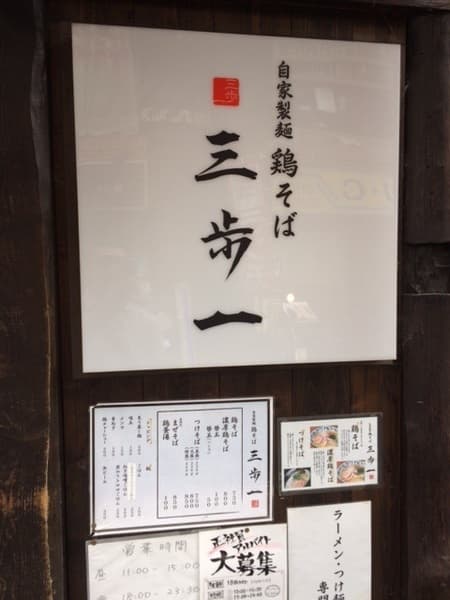 鶏そばを食べようという事になり近くにあります「三歩一」さんに寄りました。ここでも数人が待っていますが10分程で店内へ入り、おすすめの鶏そばを注文し直ぐに作って下さいました。