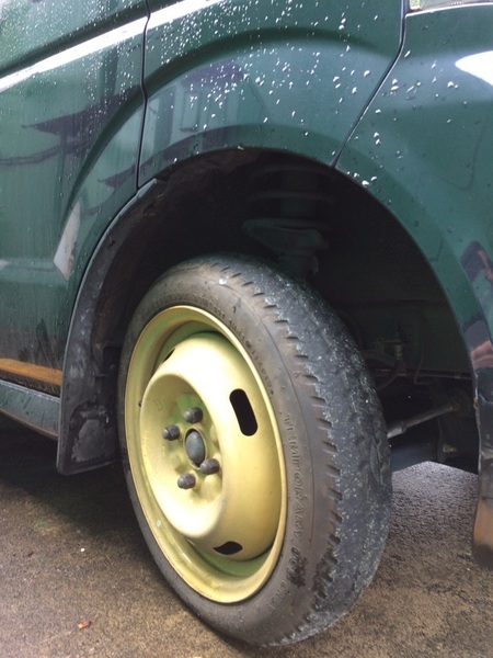 車をよく見ると、左前輪にスペアタイヤが装着されています。そして・・・