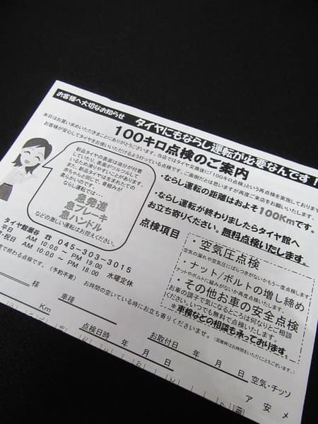 「100キロ点検」はお客様がご購入いただいたタイヤを、長く安心してお使いいただくための大切な点検です。