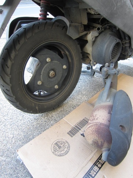 リアタイヤの交換作業はマフラーを外さないとタイヤ交換が出来ませんので注意が必要です。