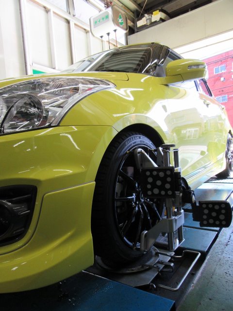 黄色のボディーカラーが印象的なスイフトスポーツのお客様がスタッドレスタイヤの購入でご来店をいただきました。