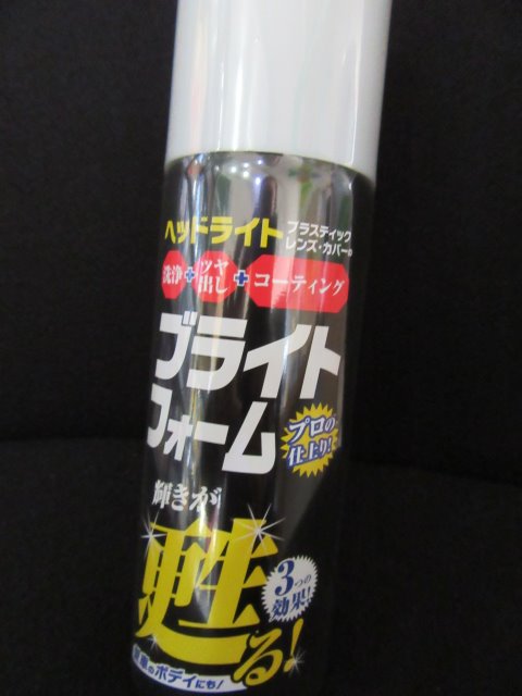 もう説明は不要ですね? 「ブライトフォーム」です! ひと拭きすれば、頑固なヘッドライトの汚れも一発で綺麗になります。