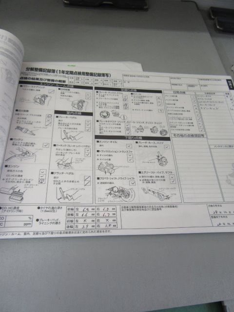 タイヤの残溝、ブレーキパッドの残量、排気ガスの濃度なども点検しています。