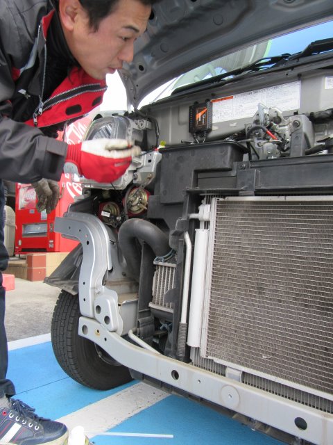 天気も良く暖かかったので、岩本店長&美濃口スタッフの二人が駐車場で手際よく作業を進めていました。