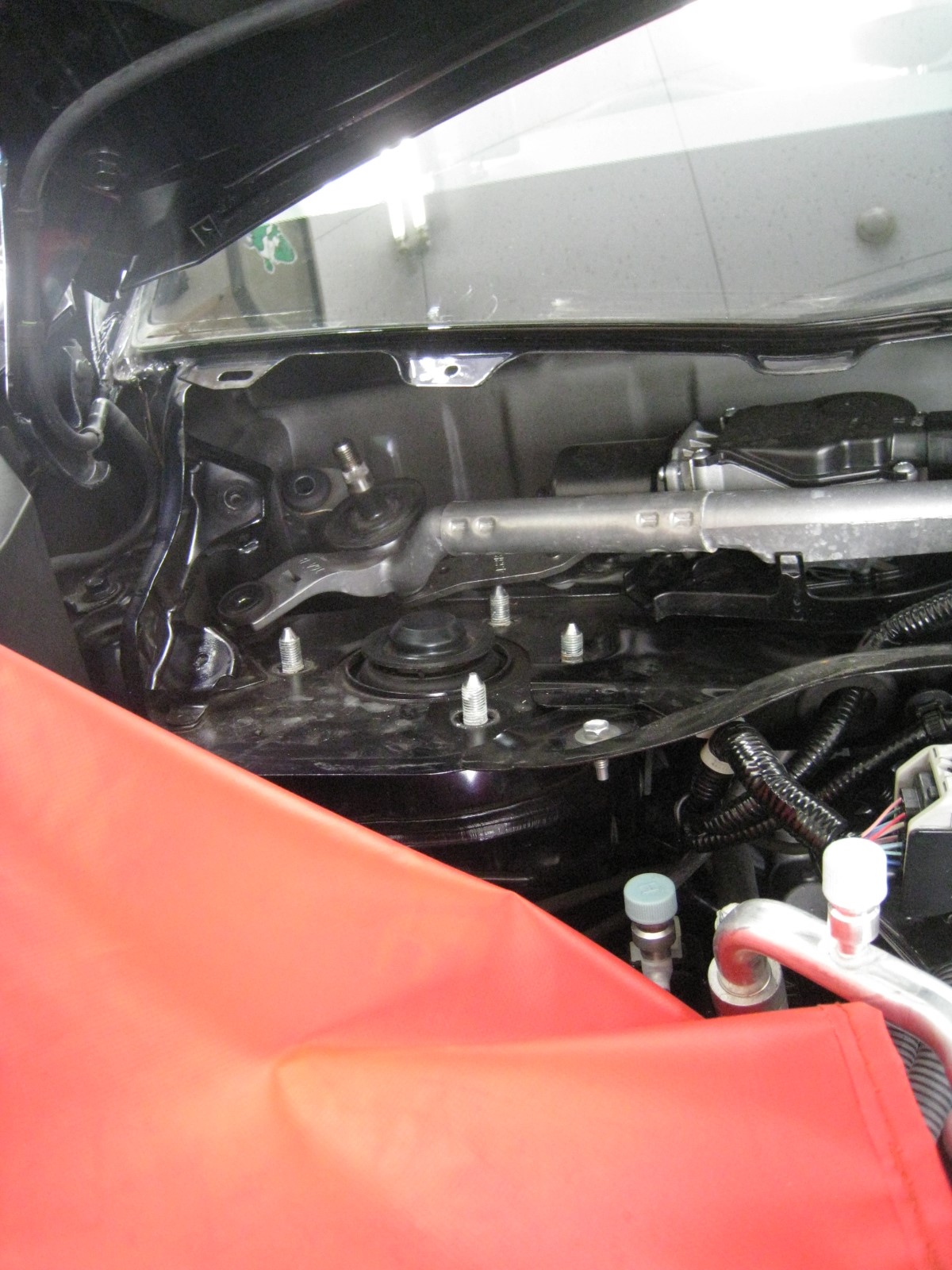 ここを外すとフロントのアッパーマウントのネジが見えます。