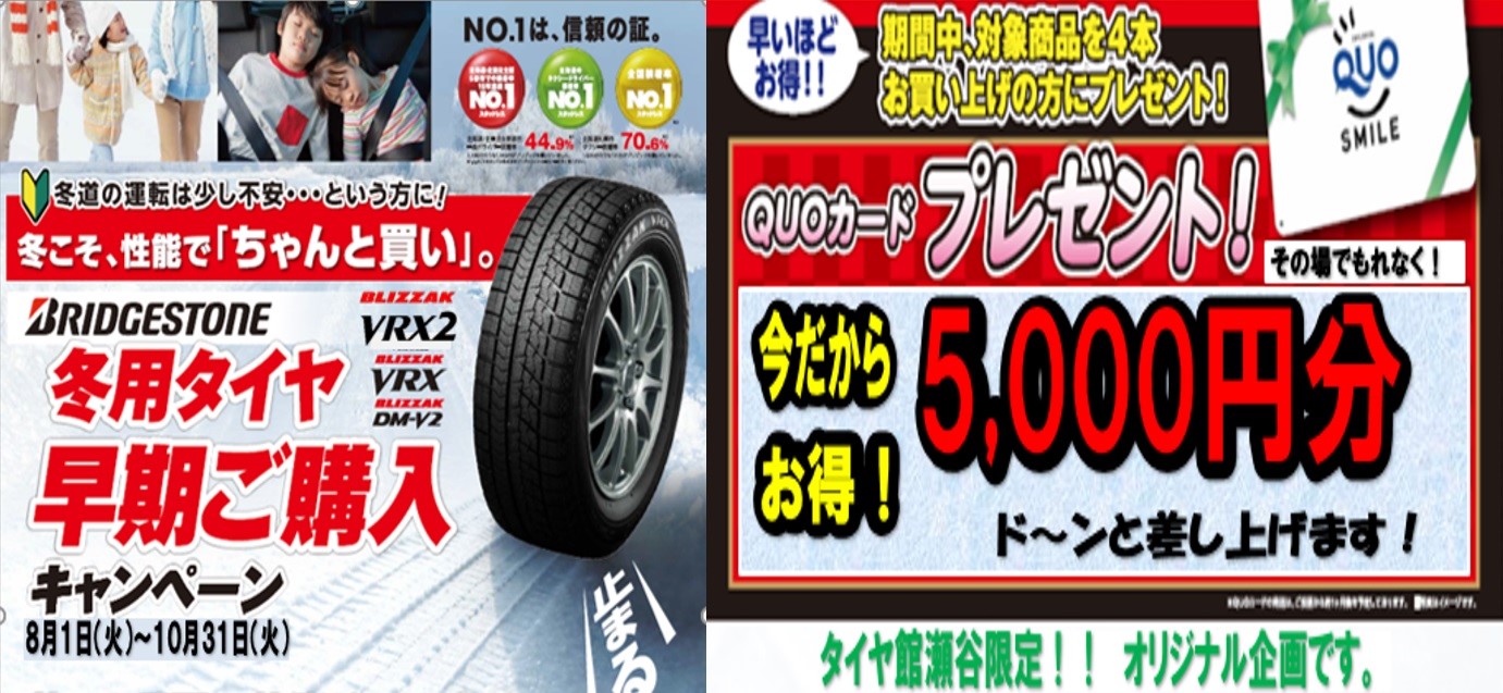 スタッドレスタイヤ 早期予約開始!! クオカード5,000円分プレゼント!!!