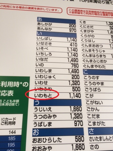 駅名の看板を見ると「いわもと」の文字が・・・。色々な人の名前があるような。