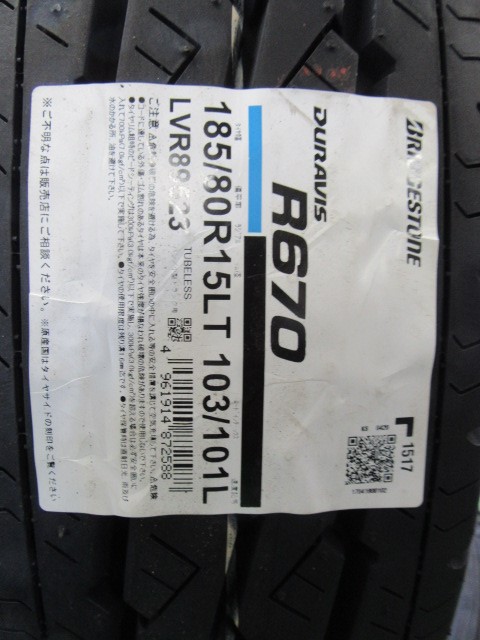 お取り付けしたタイヤはフロント、デュラビスR670の185/80R15