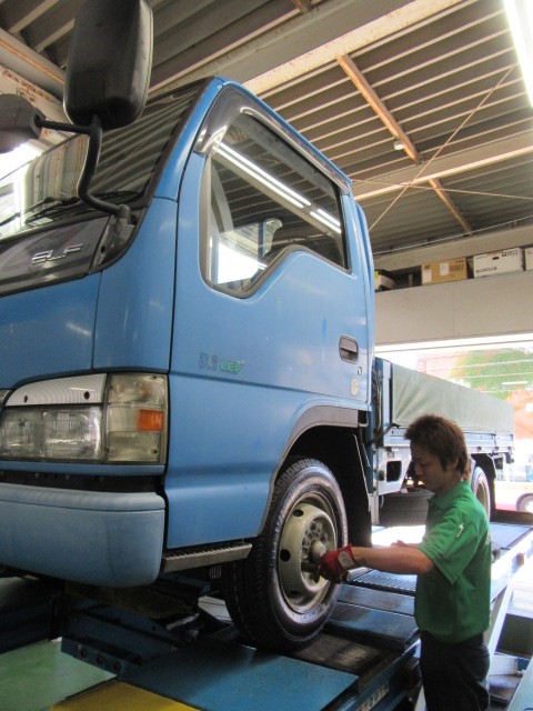 本日は「いすゞ」の「エルフ」のタイヤ交換のご紹介です。