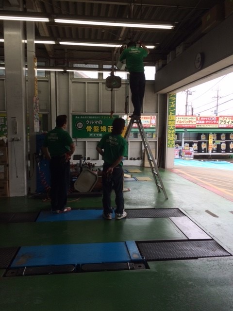 副店長の美濃口君、整備主任の杉山君も応援している感じの写真です。