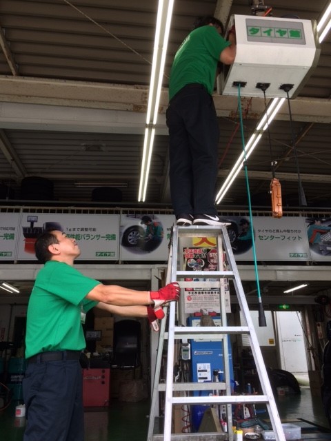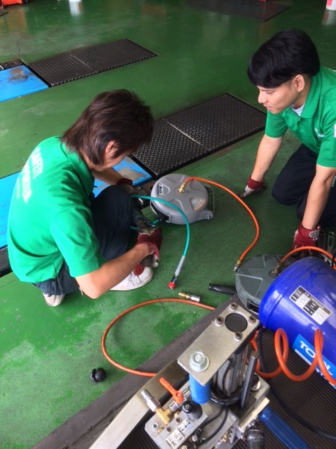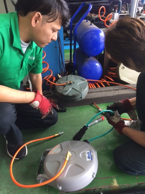 「店長~2番ピットのエアーオートリール(※)は自分が交換するんで用意をお願いします。」