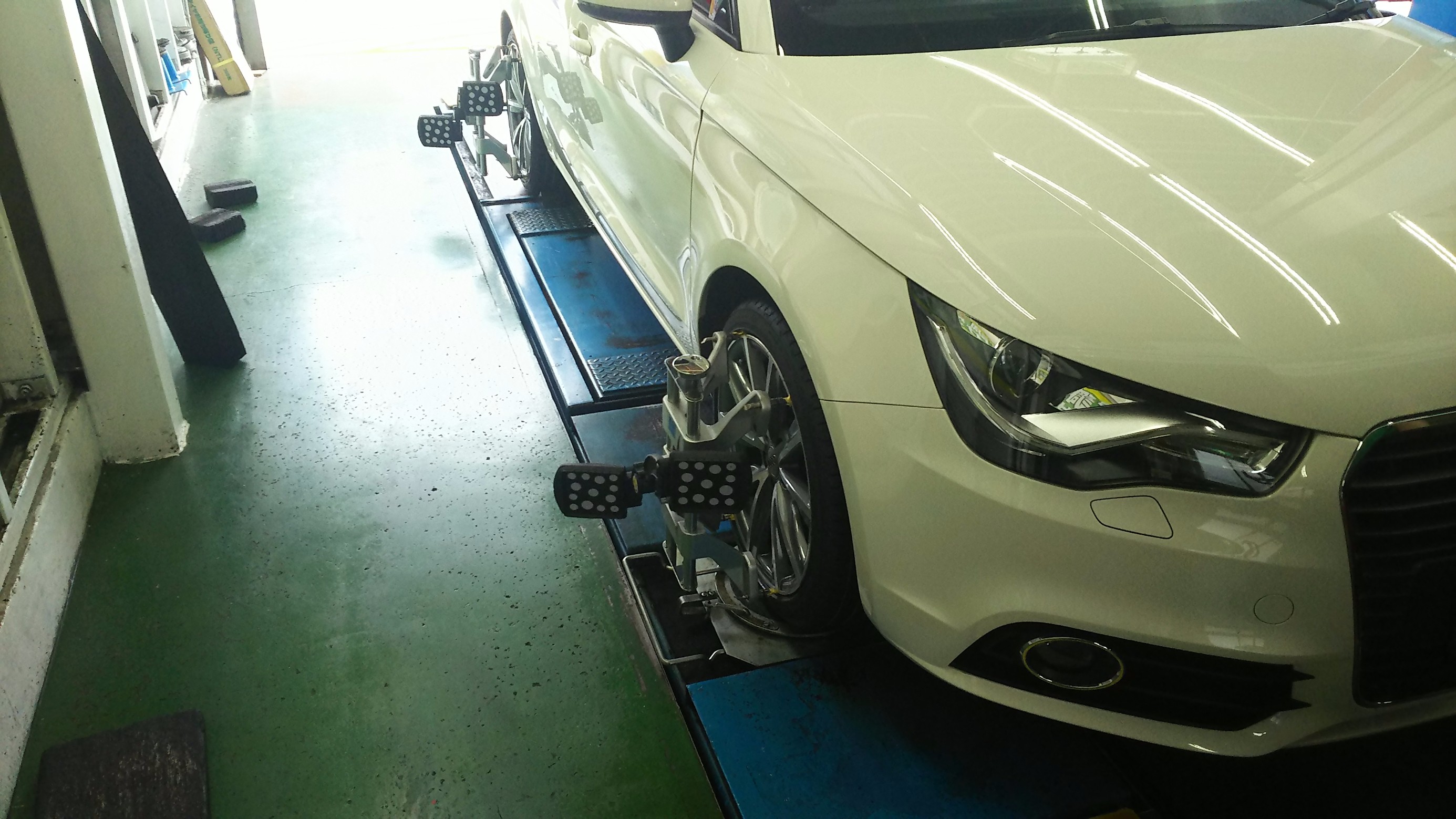 タイヤ交換の後はタイヤ交換と同時にやるのがもう常識となりつつあるアライメント調整です。