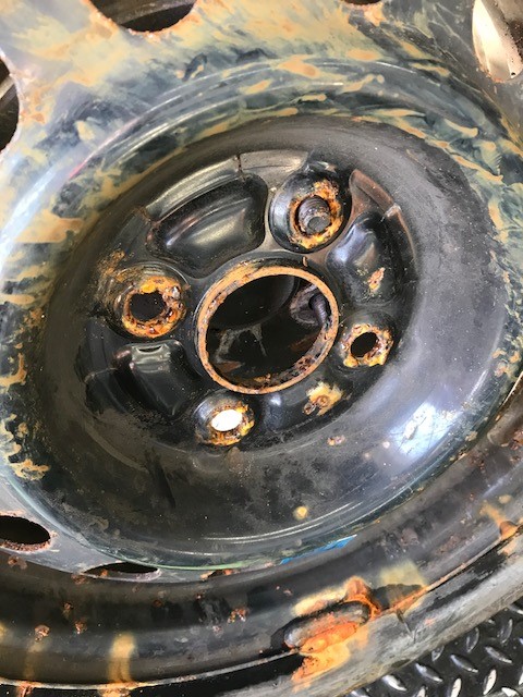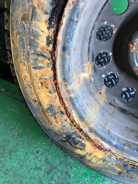 錆が剥がれ落ちてナット(ネジ)が緩んで、タイヤホイールが車体から外れる危険があります。