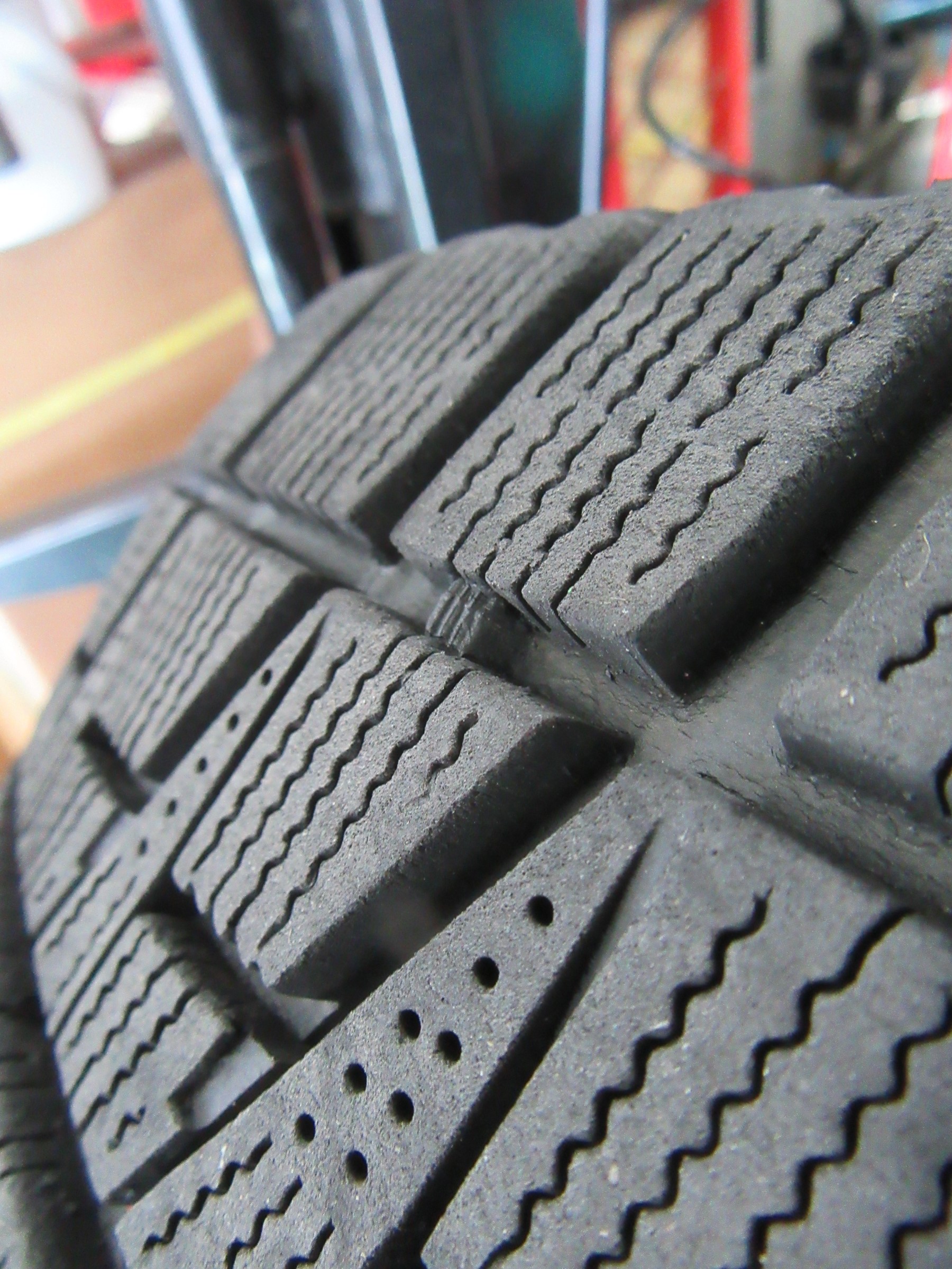 さっそくタイヤを点検してみると、スタッドレスタイヤの使用期限を表すプラットホームは