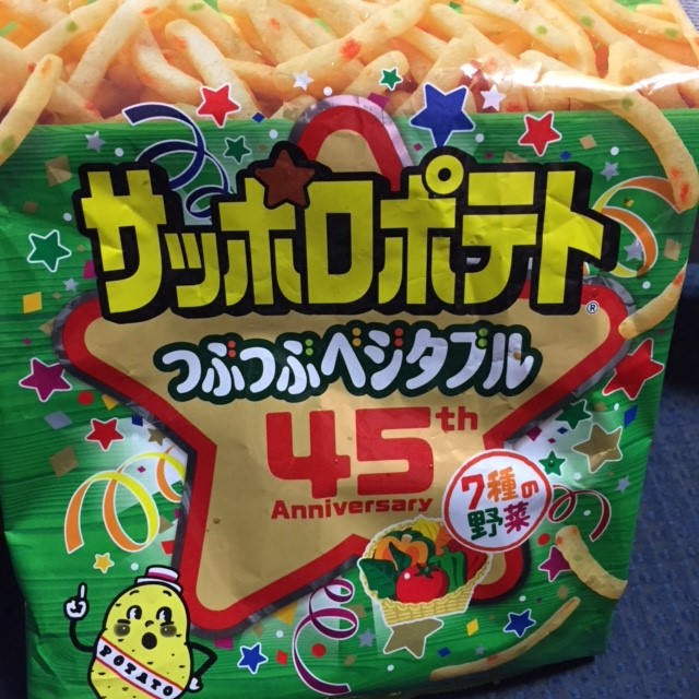 45周年なのはサッポロポテト「つぶつぶベジタブル」です。