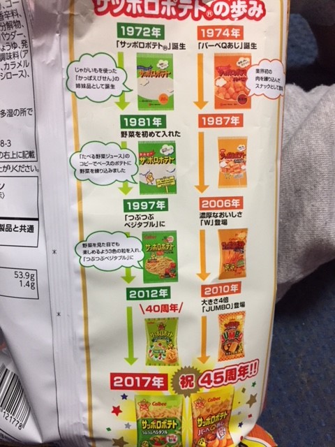 買い物に行きお菓子売り場をぷらぷらしていると45周年の文字が目に留まりました。