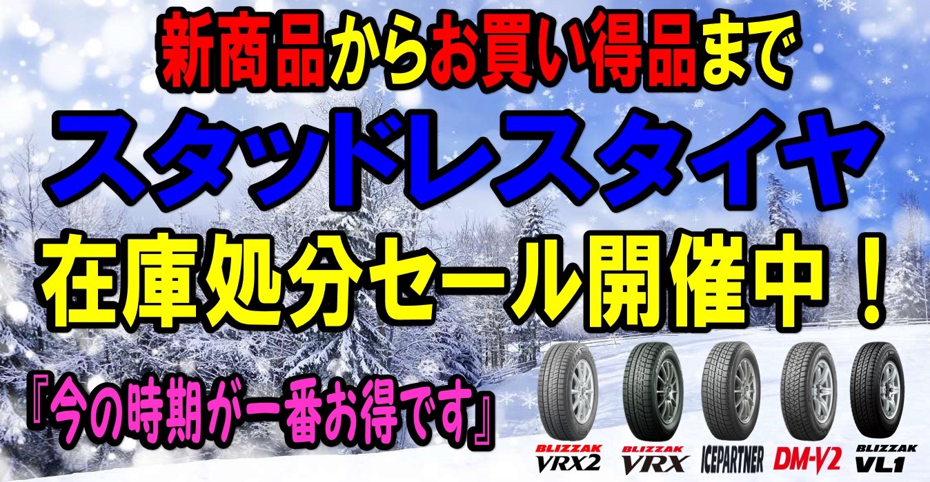 そして昨日より「スタッドレスタイヤ在庫処分セール」も開催中です!!