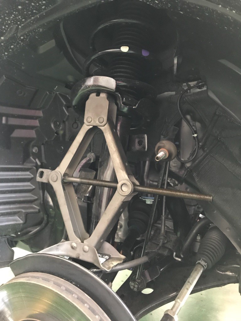 従来の交換方法だと少し大変なので、パンタジャッキを使って作業しました。