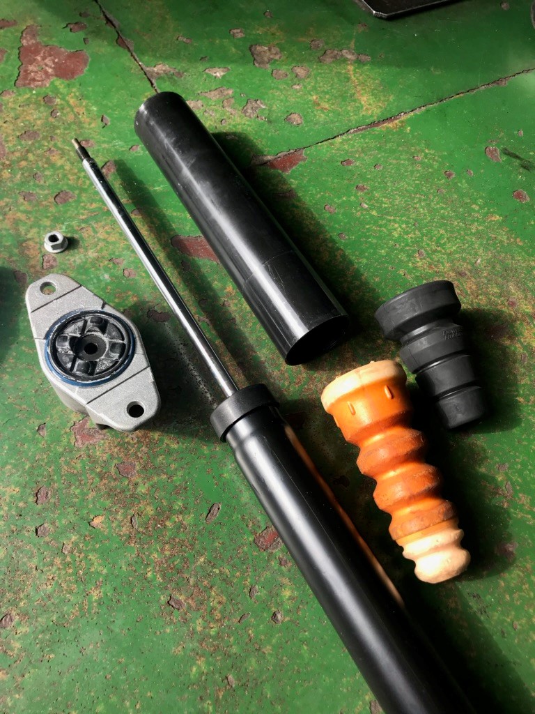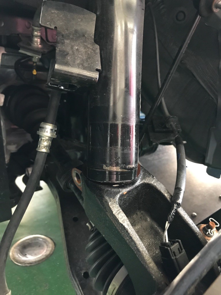 ショックアブソーバーも取り外し、一度内部を分解して「スーパーダウンサスラバー」を取付しました。