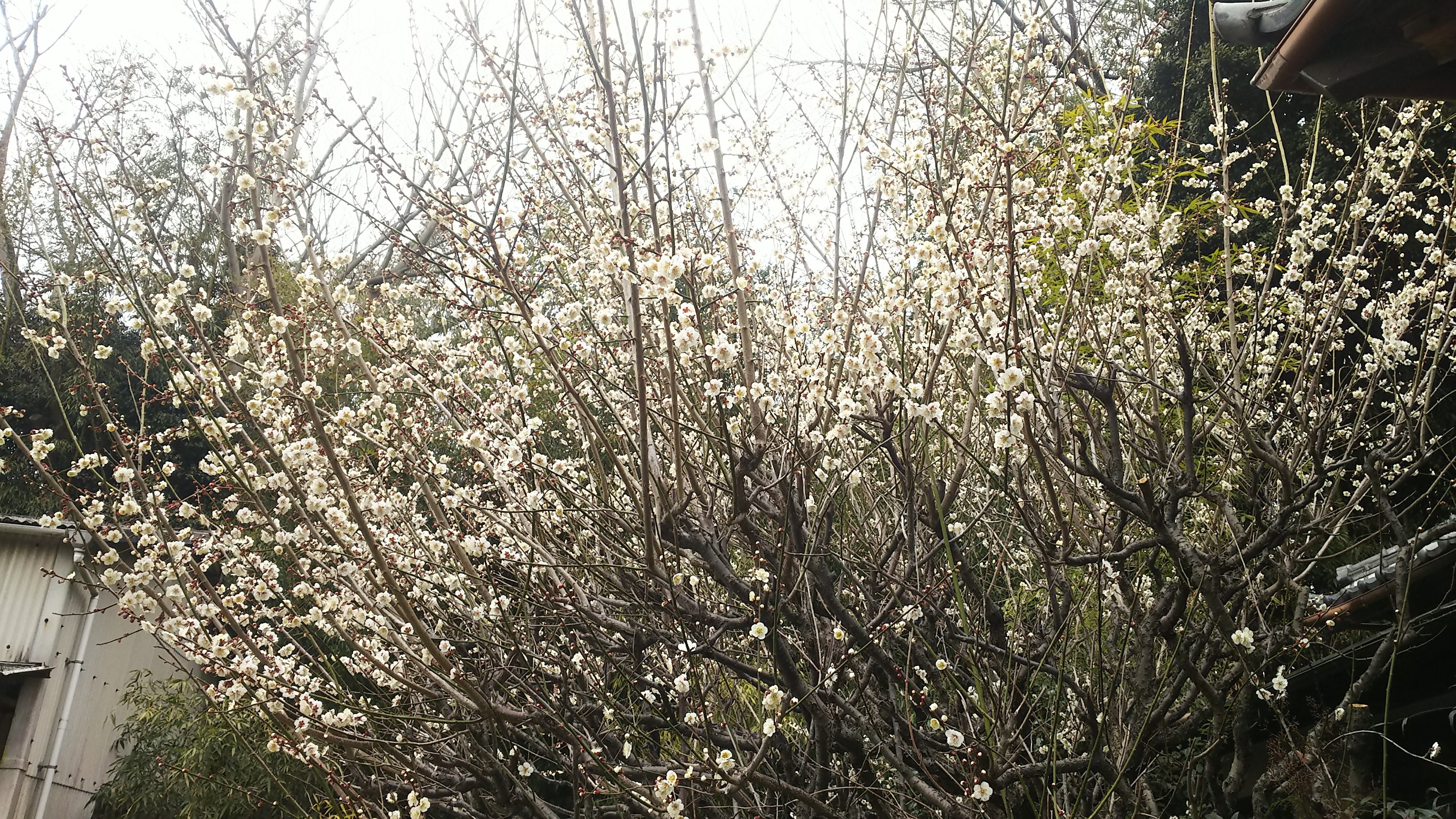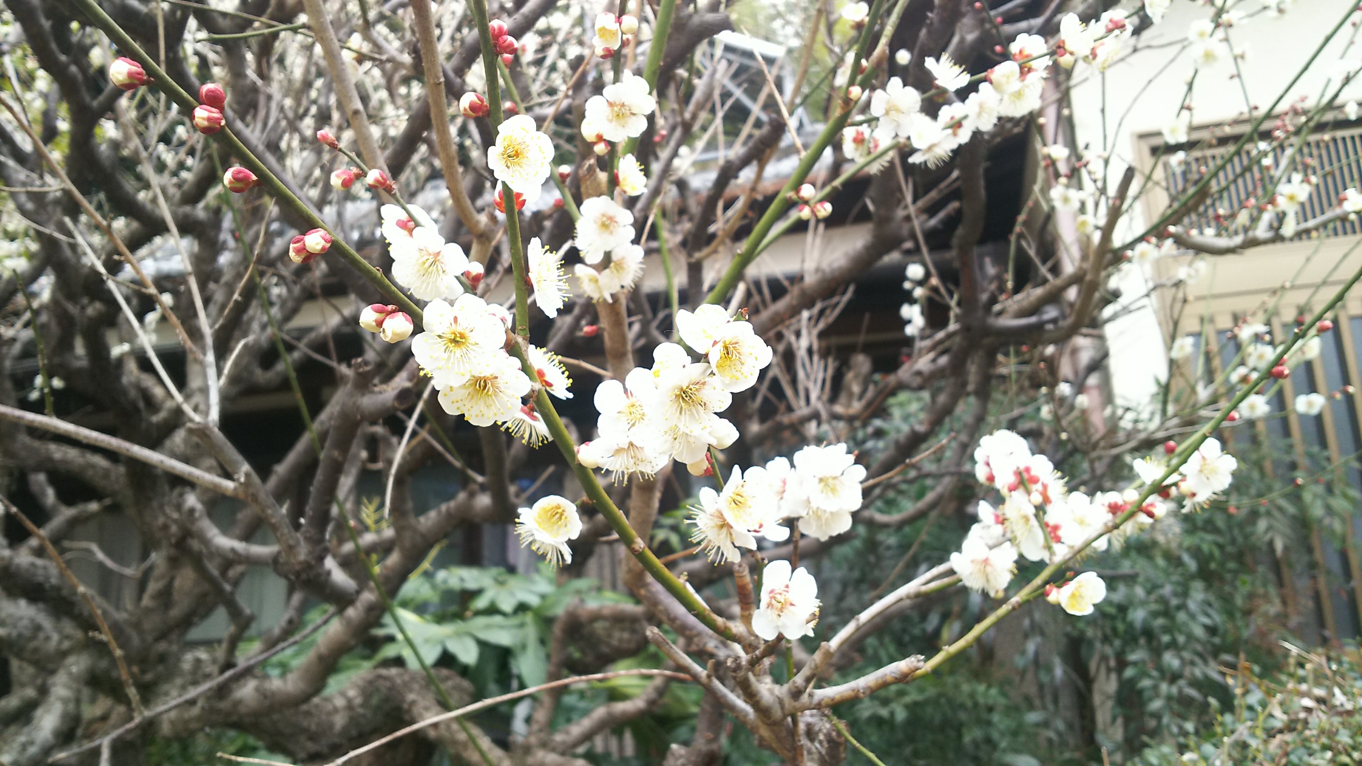 今朝出勤するときに我が家の庭にある梅の木の花が開花していました(*´ω`*)