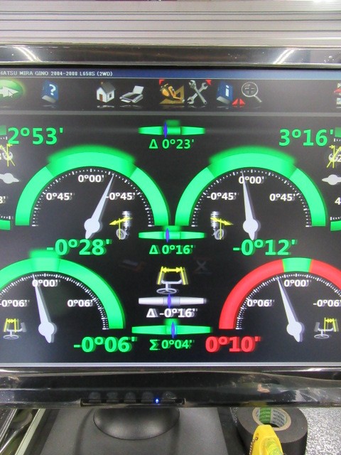 本日は車検でお預かりしたミラジーノのアライメント作業のご紹介です。