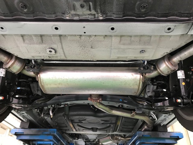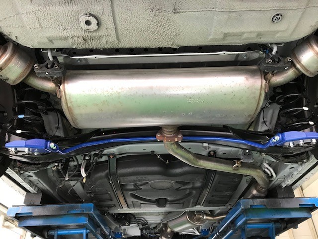 今回取り付けとなりましたスタビバー。マフラーの内側に配置。