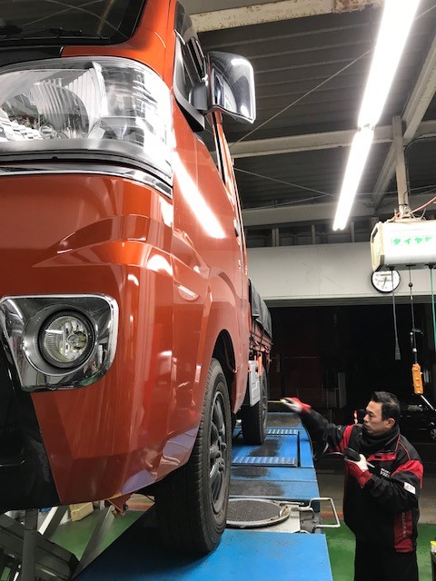 エンジンオイル交換だけではなく、タイヤの空気圧調整も副店長のこだわり!!