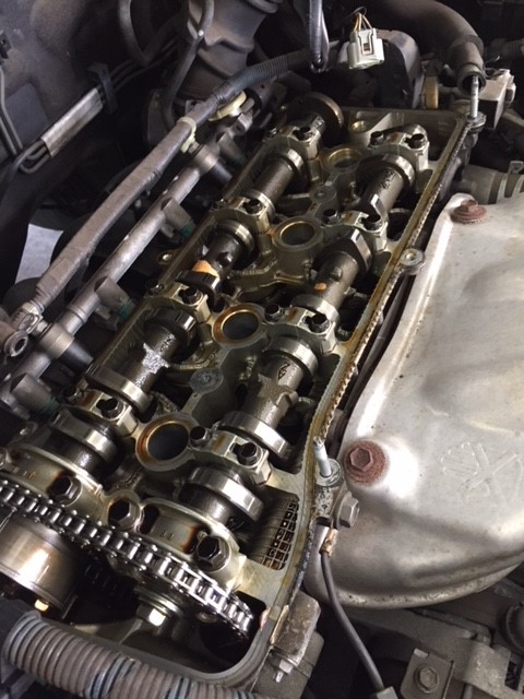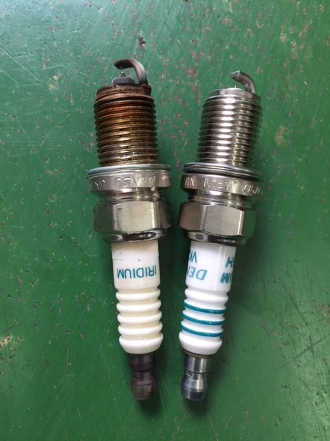車検見積もりをした際に、ロッカーカバーからエンジンオイルが漏れてしまい、スパークプラグにもオイルが付着してしまっていました。