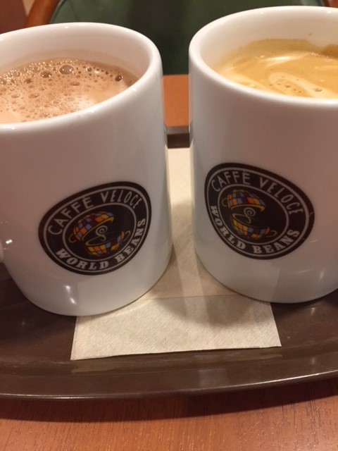 自分はカフェラテを注文、うちの奥さんはココアを注文しました。