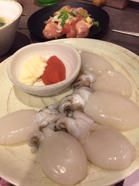 紋甲イカを注文すると明太子とマヨネーズが付いてきます。